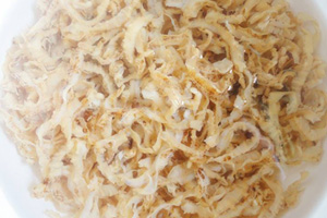 海參花是海參卵。對(duì)于海參花,以前人們很少注意到,更談不上珍惜了(就像朝陽(yáng)人用珍貴的樹(shù)化石砌豬圈),特別在我國(guó),人們食用海參,無(wú)論是飽口福還是養(yǎng)生保健,通常都是選擇海參皮肉(體壁),而海參體內(nèi)的腸及卵等內(nèi)臟則被廢棄掉了。而在國(guó)外,尤其是日本的人,則把海參的腸和卵利用到了極致。他們把海參腸卵稱(chēng)美譽(yù)為“海參花”,或者先用其沏茶、泡酒,然后再煨湯,或者把新鮮的“海參花”鹽漬發(fā)酵制成參花醬,在市場(chǎng)上價(jià)格特別昂貴。